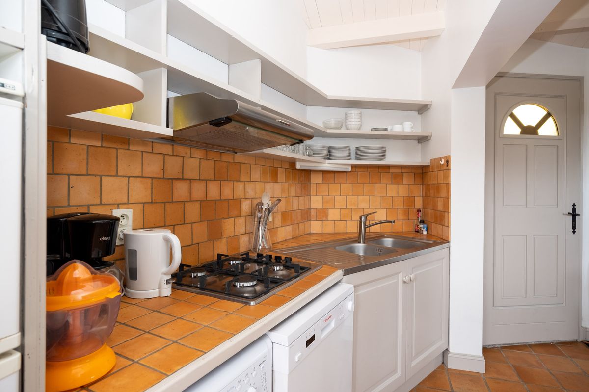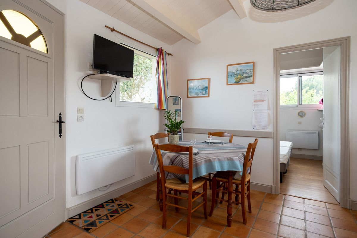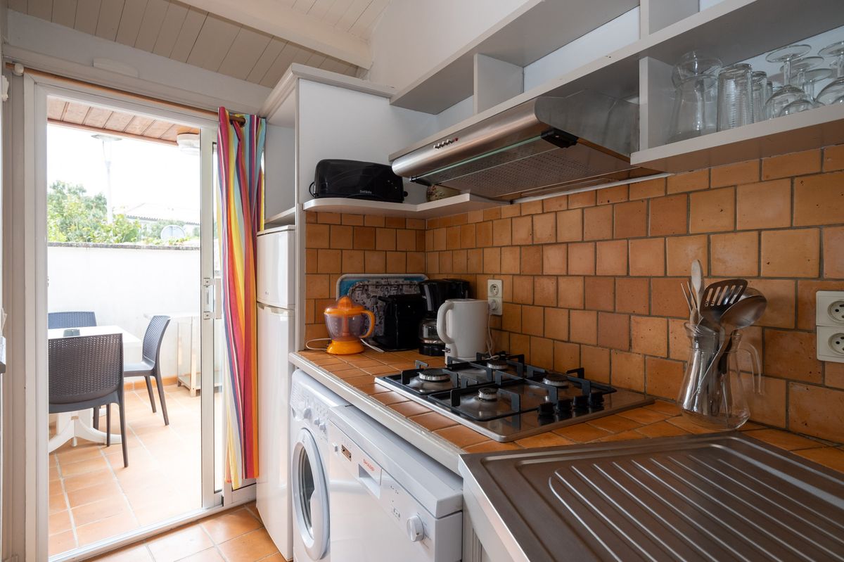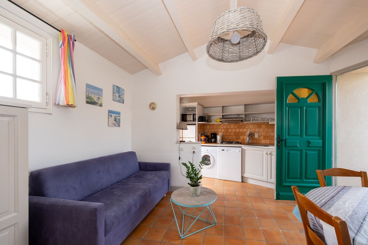 Maison pour 2 personnes, 25m² habitable, tout confort, cour privative, à 50m de la mer, à 300m des commerces, à 500m du port, garage à vélos, piscine collective chauffée pouvant être utilisée couverte, parc-solarium, parking pour une voiture.