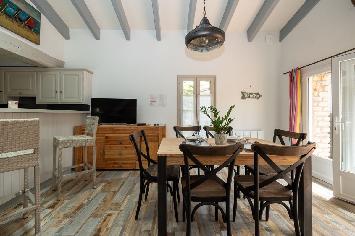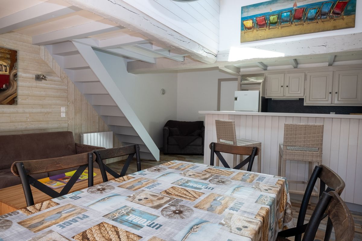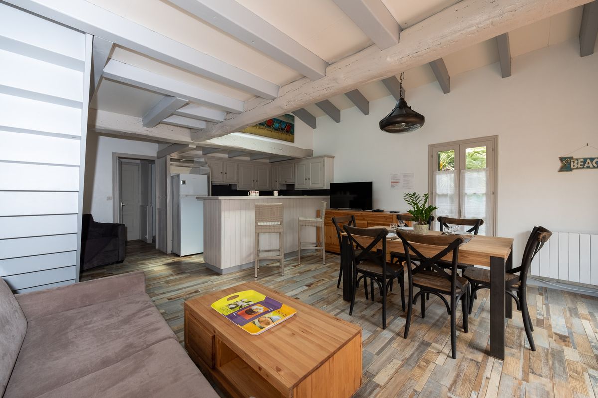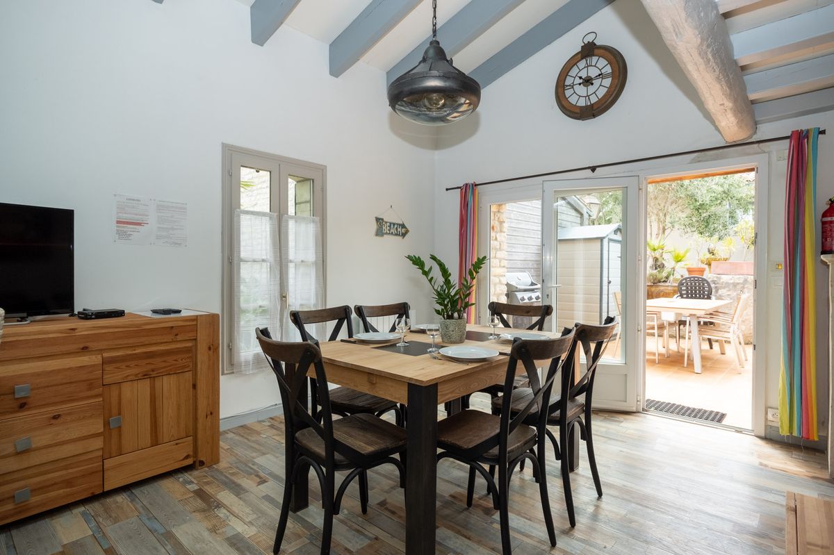 Maison pour 6 personnes, 60m² habitable, tout confort, cour privative, à 50m de la mer, à 300m des commerces, à 500m du port, garage à vélos, piscine collective chauffée pouvant être utilisée couverte, parc-solarium, parking pour une voiture.