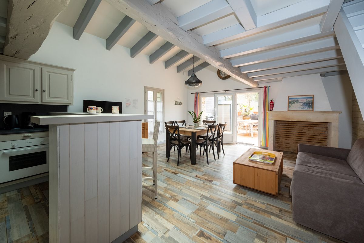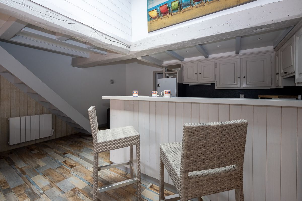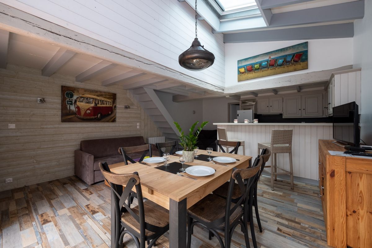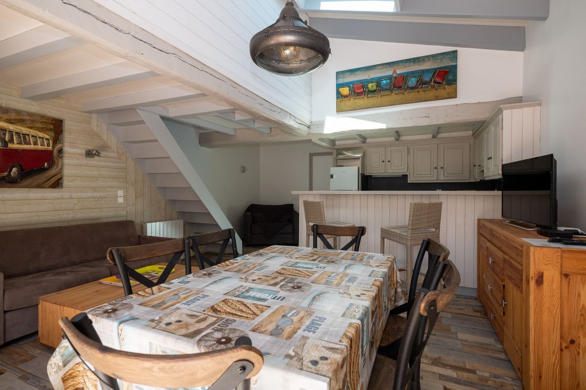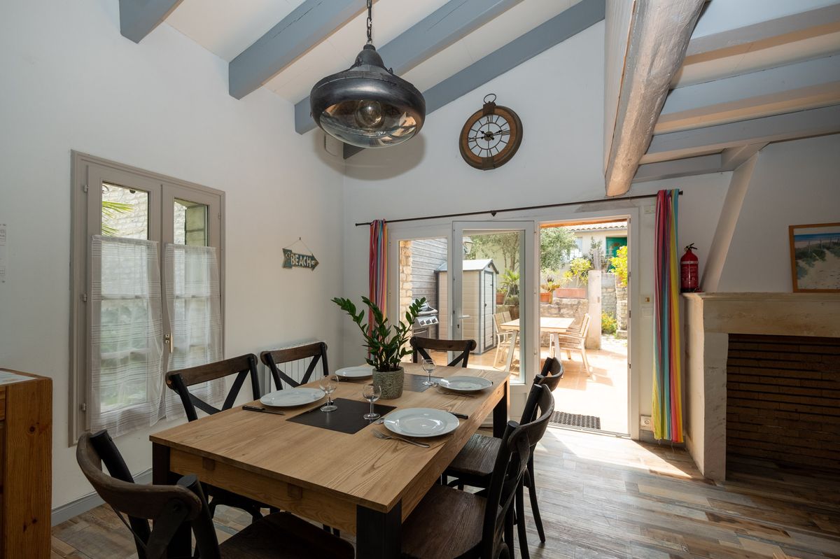 Maison pour 6 personnes, 60m² habitable, tout confort, cour privative, à 50m de la mer, à 300m des commerces, à 500m du port, garage à vélos, piscine collective chauffée pouvant être utilisée couverte, parc-solarium, parking pour une voiture.