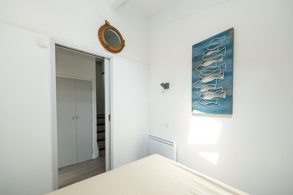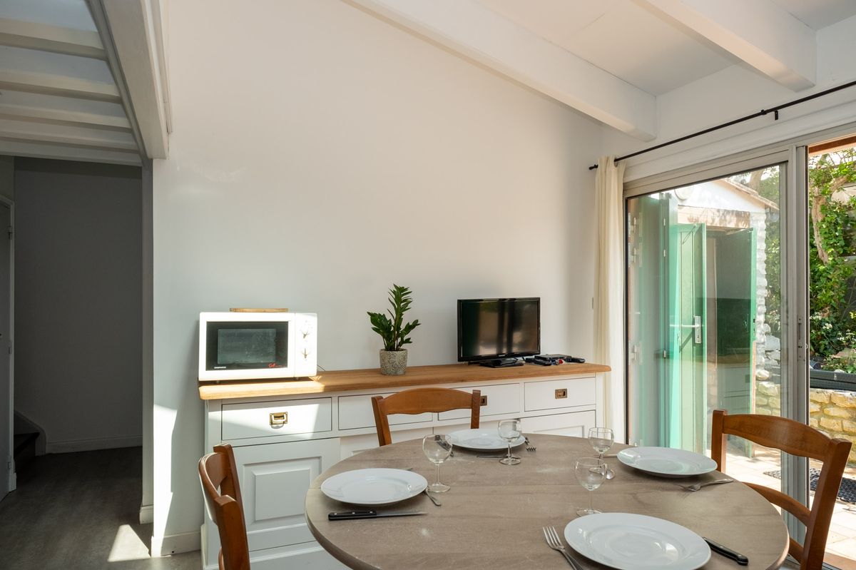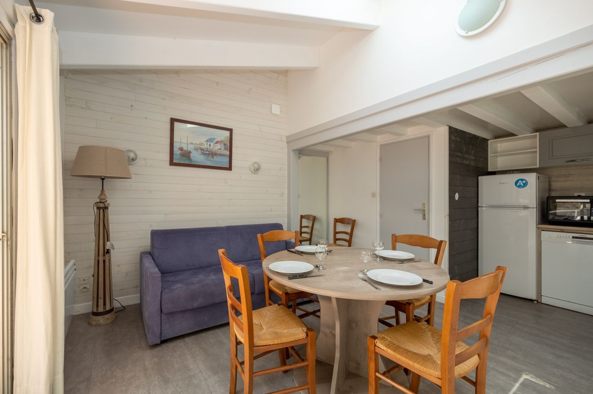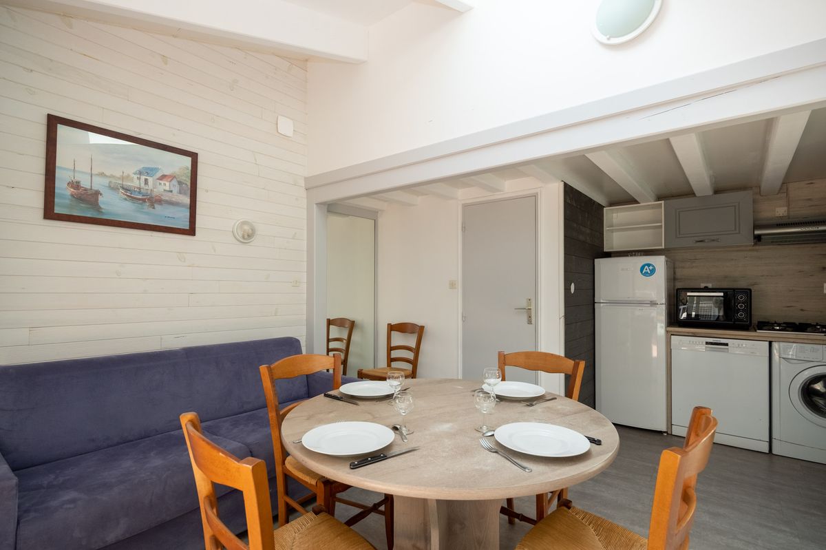 Maison pour 4 personnes, 25m² habitable, tout confort, cour privative, à 50m de la mer, à 300m des commerces, à 500m du port, garage à vélos, piscine collective chauffée pouvant être utilisée couverte, parc-solarium, parking pour une voiture.