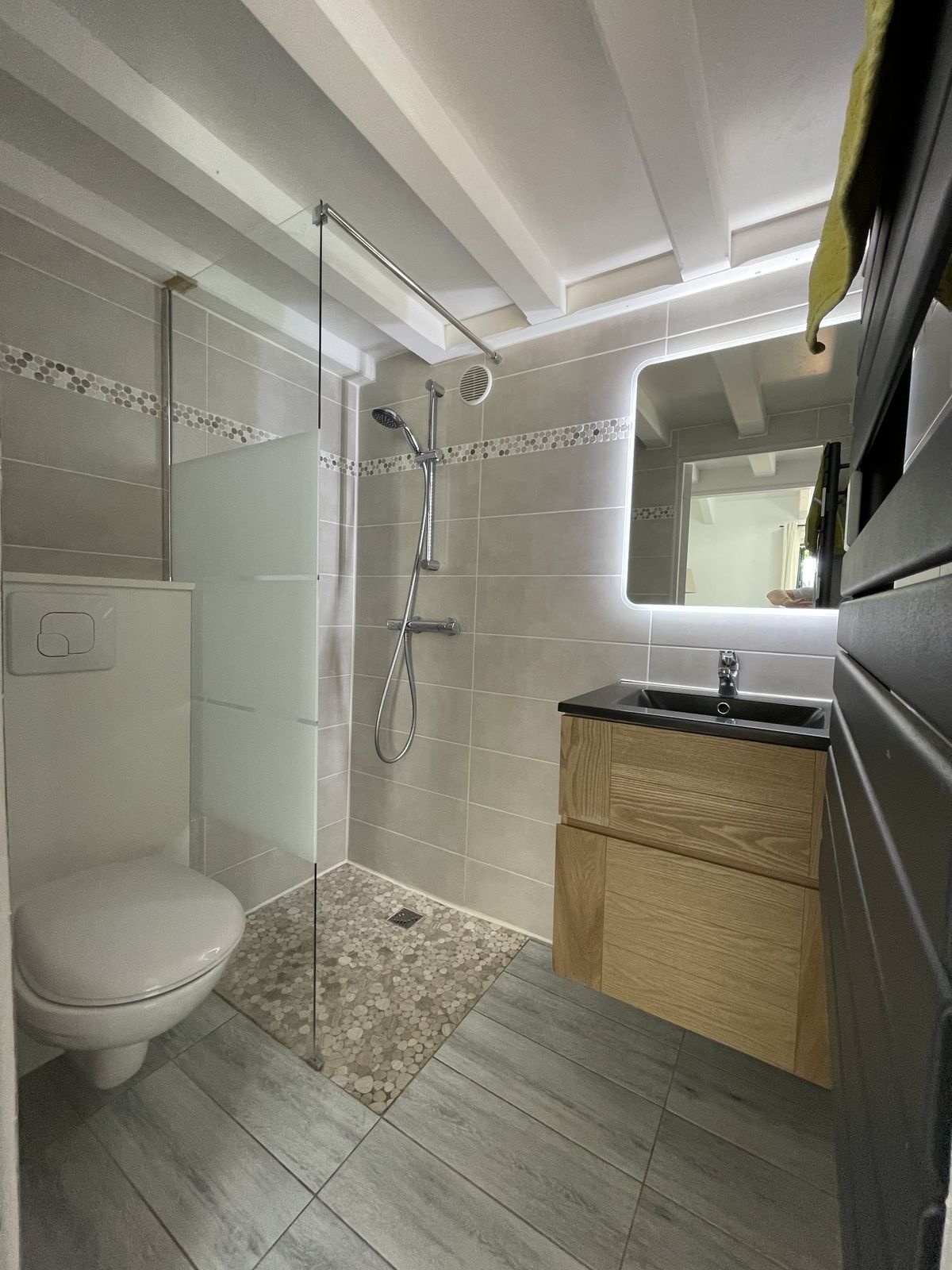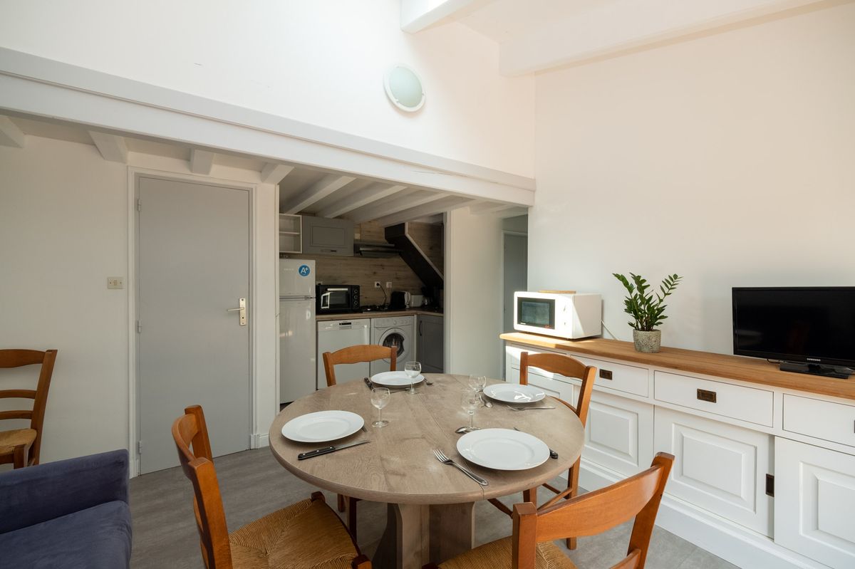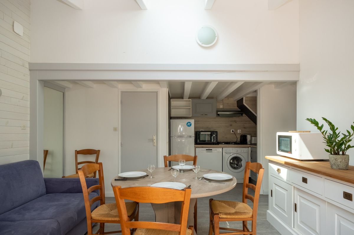 Maison pour 4 personnes, 25m² habitable, tout confort, cour privative, à 50m de la mer, à 300m des commerces, à 500m du port, garage à vélos, piscine collective chauffée pouvant être utilisée couverte, parc-solarium, parking pour une voiture.